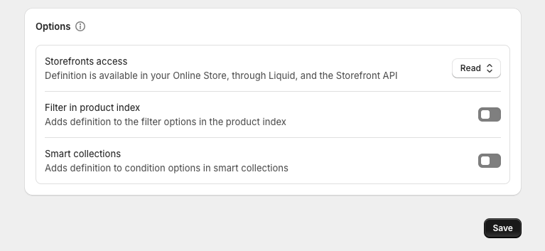 Save the definition and the product property will now also be displayed with the products in the Shopify admin.